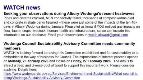 On 29 January 2020, WATCH produced the following media release: 2019 was Australia’s hottest and driest year on record, heralding Australia’s longest bushfire season. Locally records were also broken, with Border Mail letters to the editor on climate change hitting an all-time high and signalling strong community support for climate action. Wodonga Albury Toward Climate…