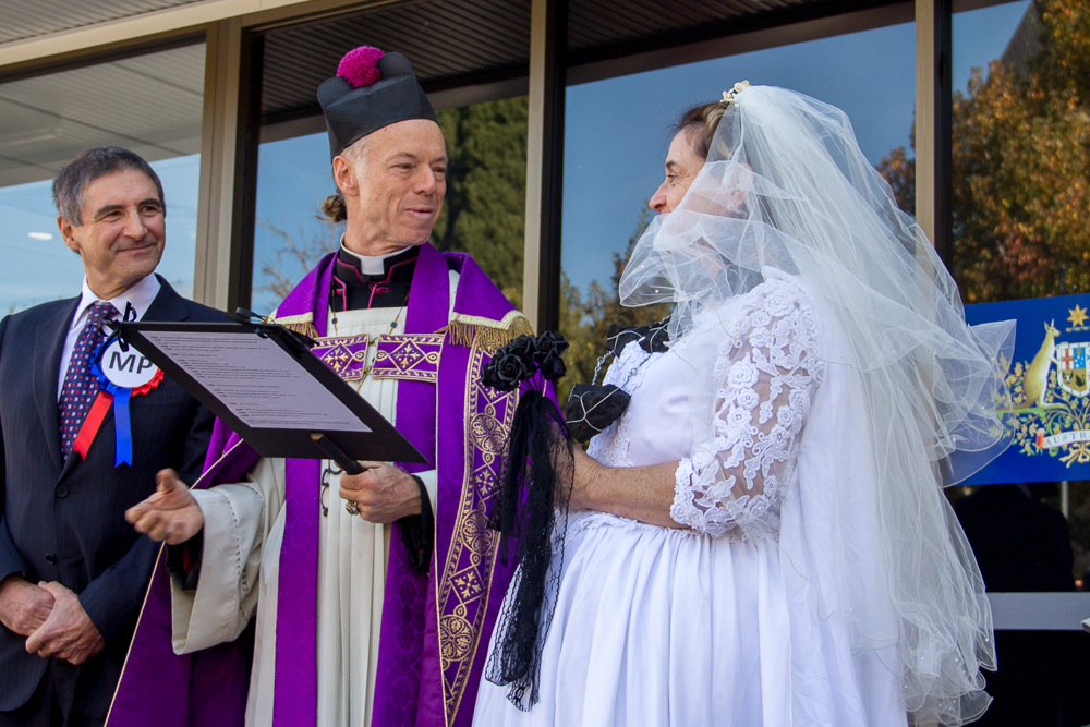 What a wonderful wedding! Big thanks to our MC Lauriston Muirhead, Father Peter Mcleod-Miller, Bridget Doyle (Baroness bride), Jim Sloan (MP) and Marjorie Glanville (music).