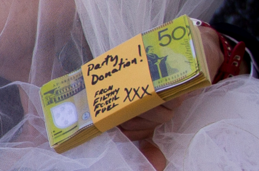 This action aimed to draw attention to fossil fuel subsidies and political donations by the fossil fuel industry.