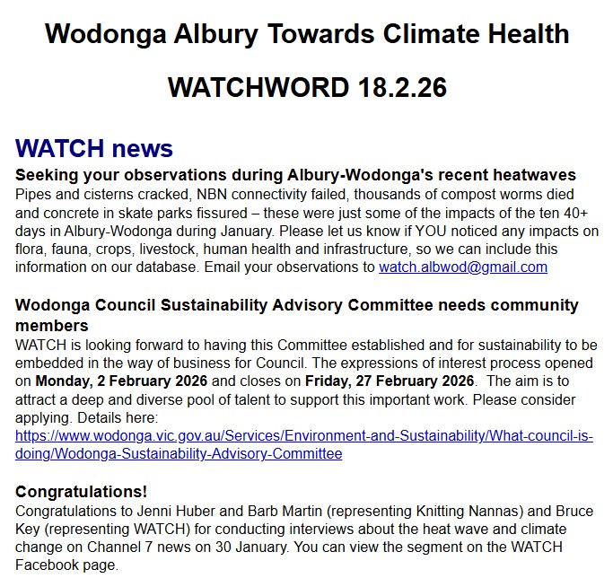 As always, this edition of WATCHWORD is full of information and links about local and national climate change issues, as well as the events and activities of local environment and sustainability community groups.